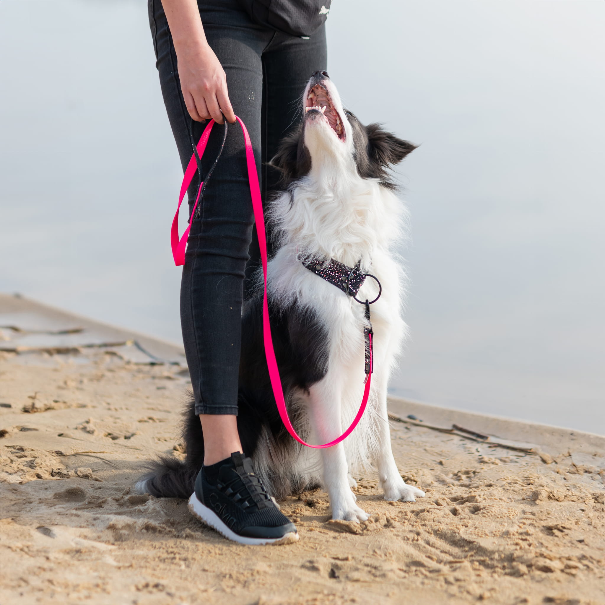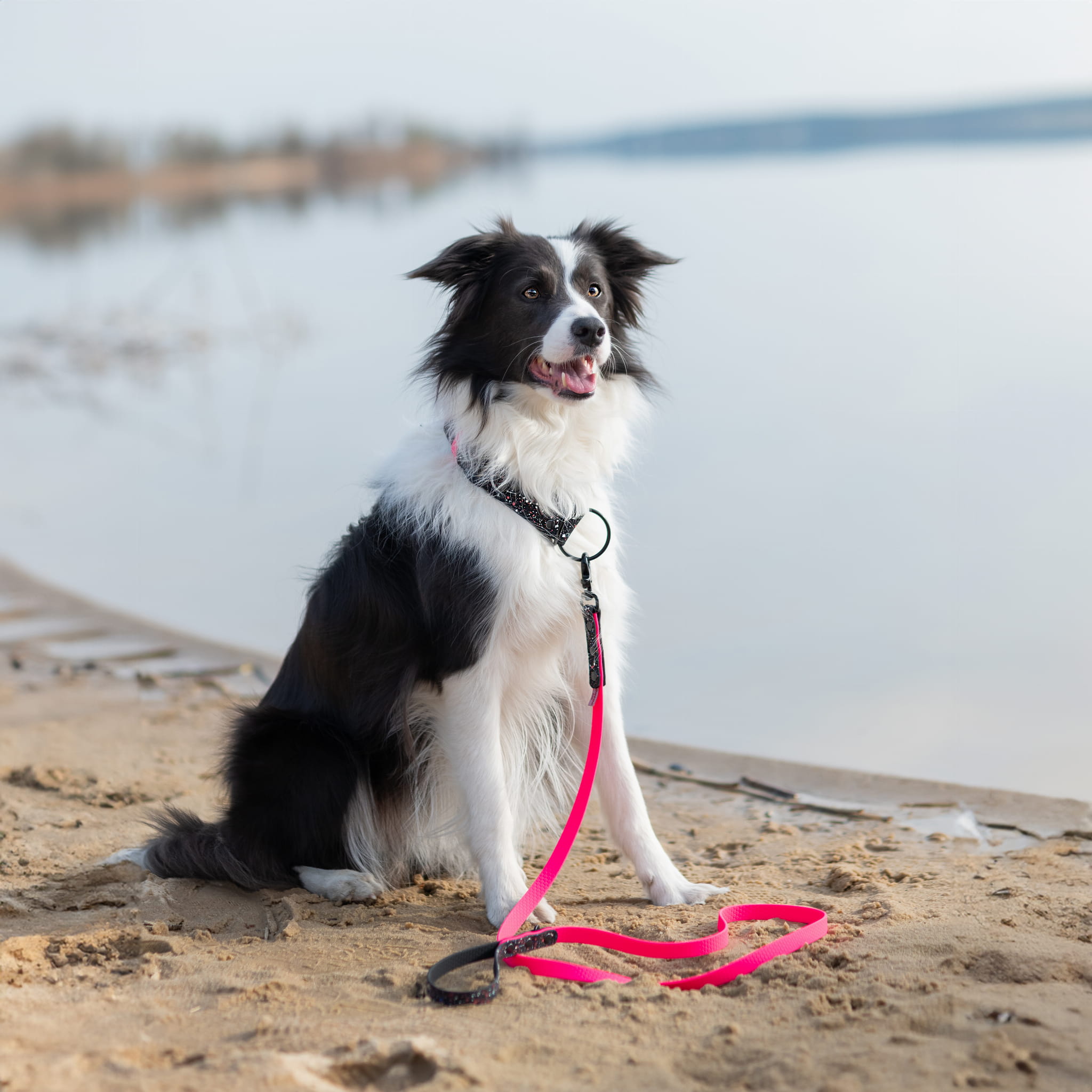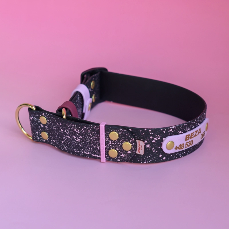 UWAGA: mimo że farba trzyma się naprawdę dobrze, taką obrożę należy traktować delikatniej — nie szorować, nie używać mocniejszych detergentów oraz unikać długiego przebywania psiaka w wodzie.