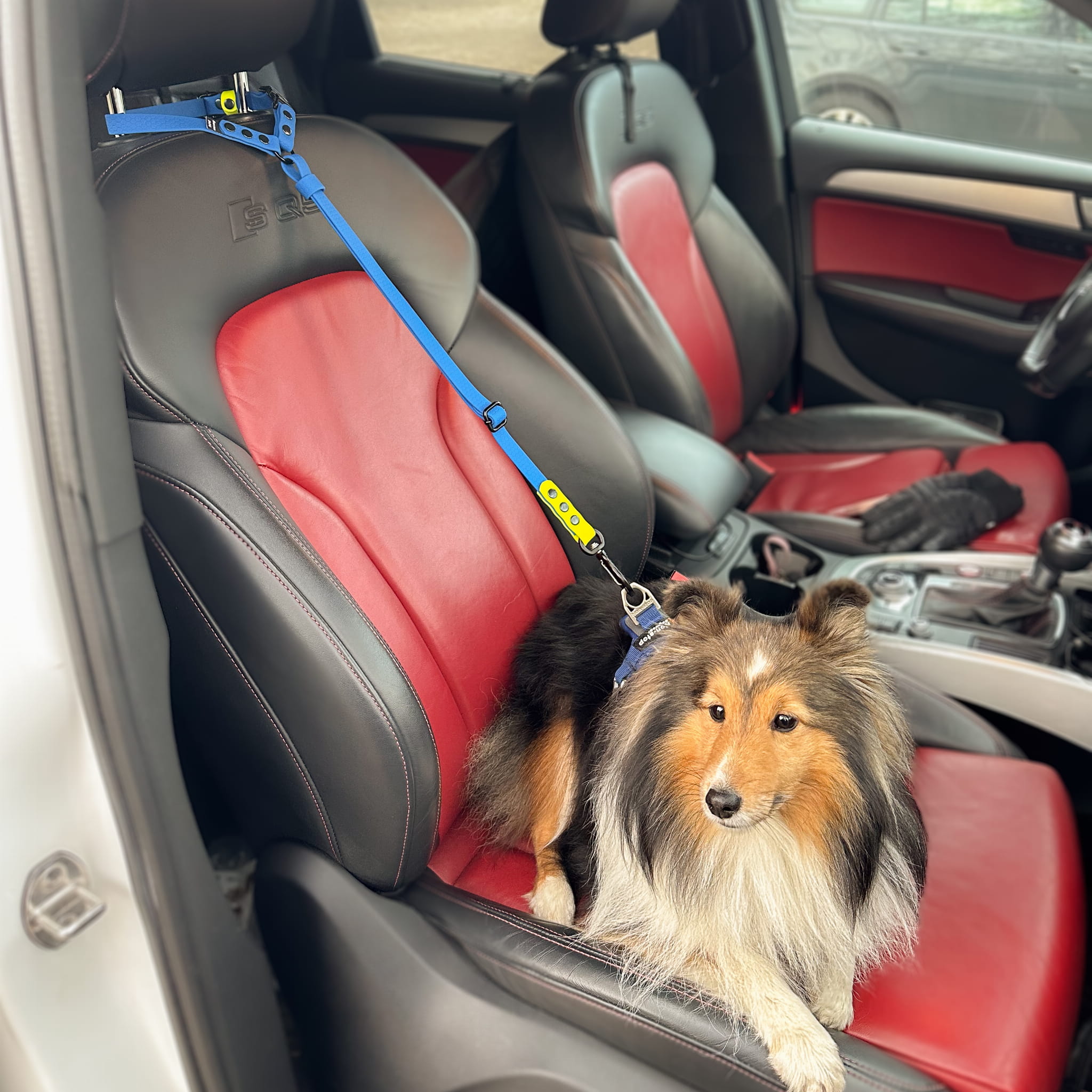 - Dodatkowa zaleta: po odpięciu z auta możesz użyć tej wersji jako krótkiej smyczy, np. w przerwach w trasie.