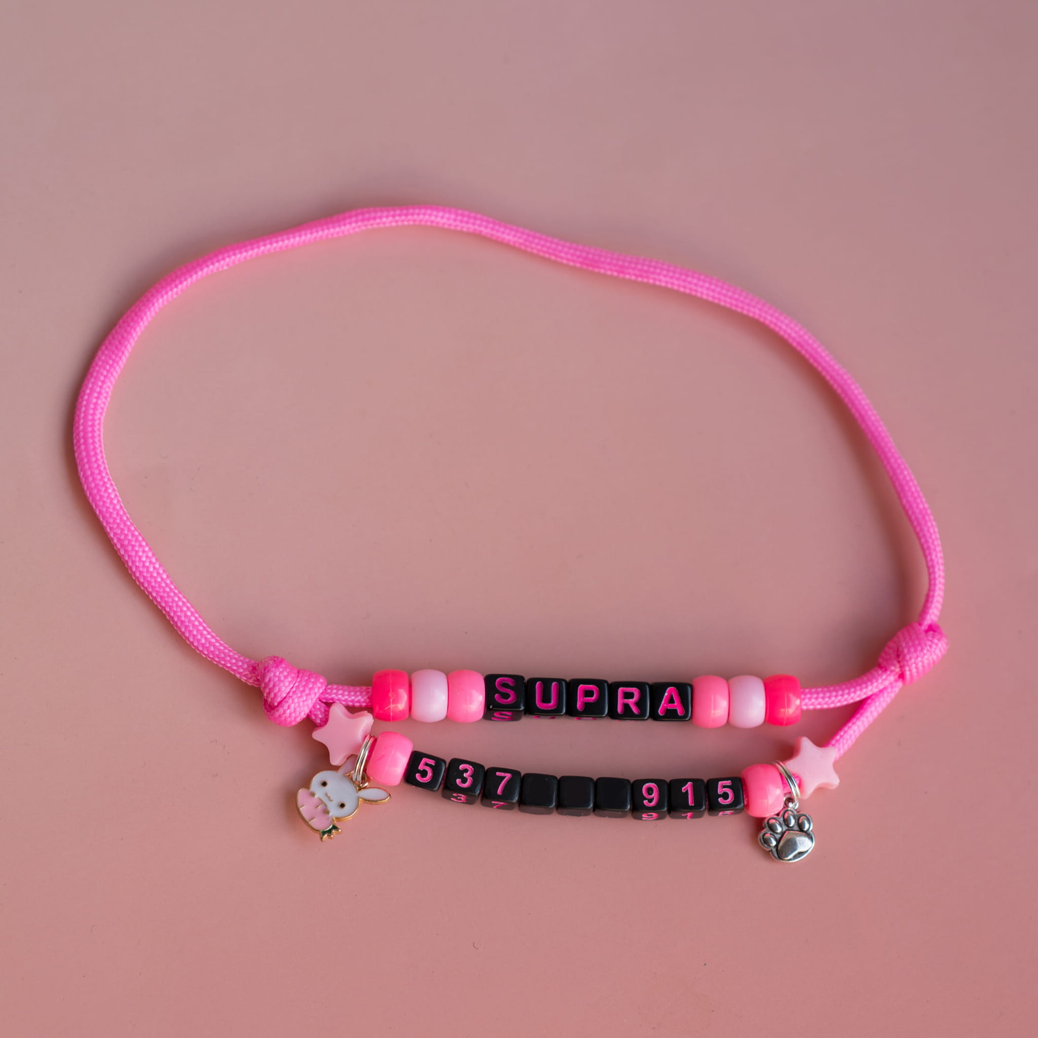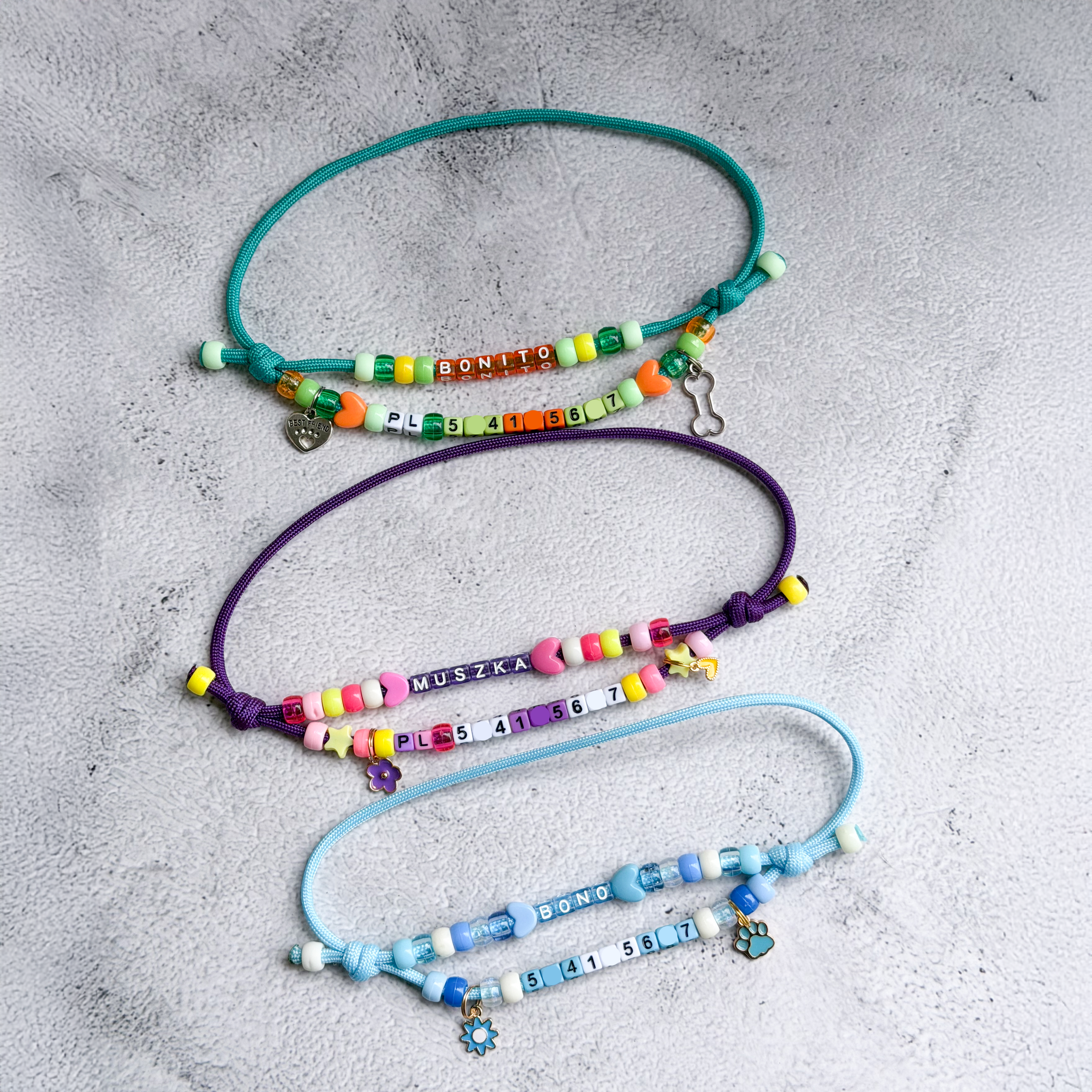 Adresówka sznurkowa dla psa, identyfikator z koralikami ozdobna, biżuteria dla psa
