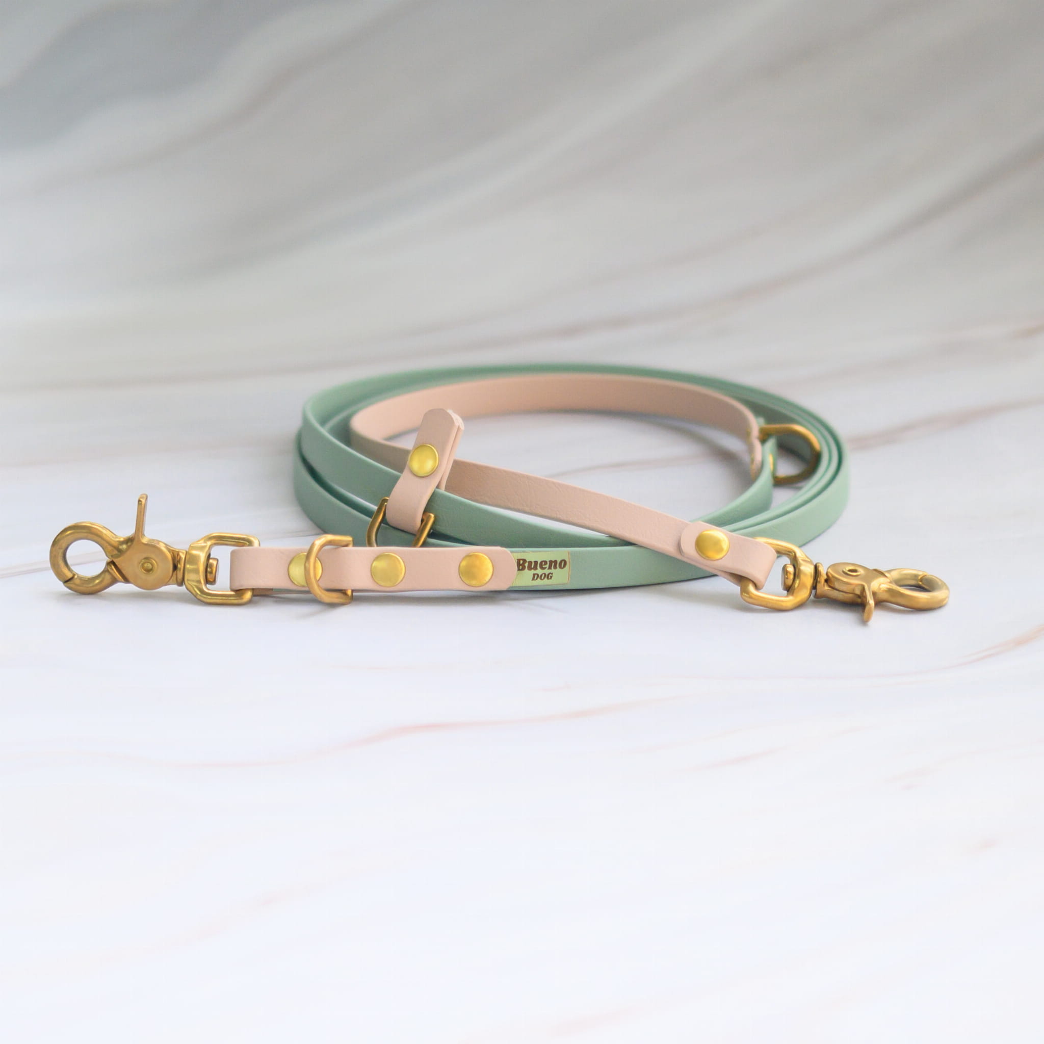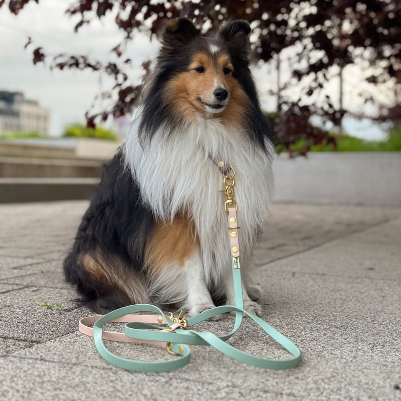 Smycz przepinana z obu stron zakończona jest karabińczykiem oraz posiada 3 przepięcia pozwalające na regulacje długości smyczy.