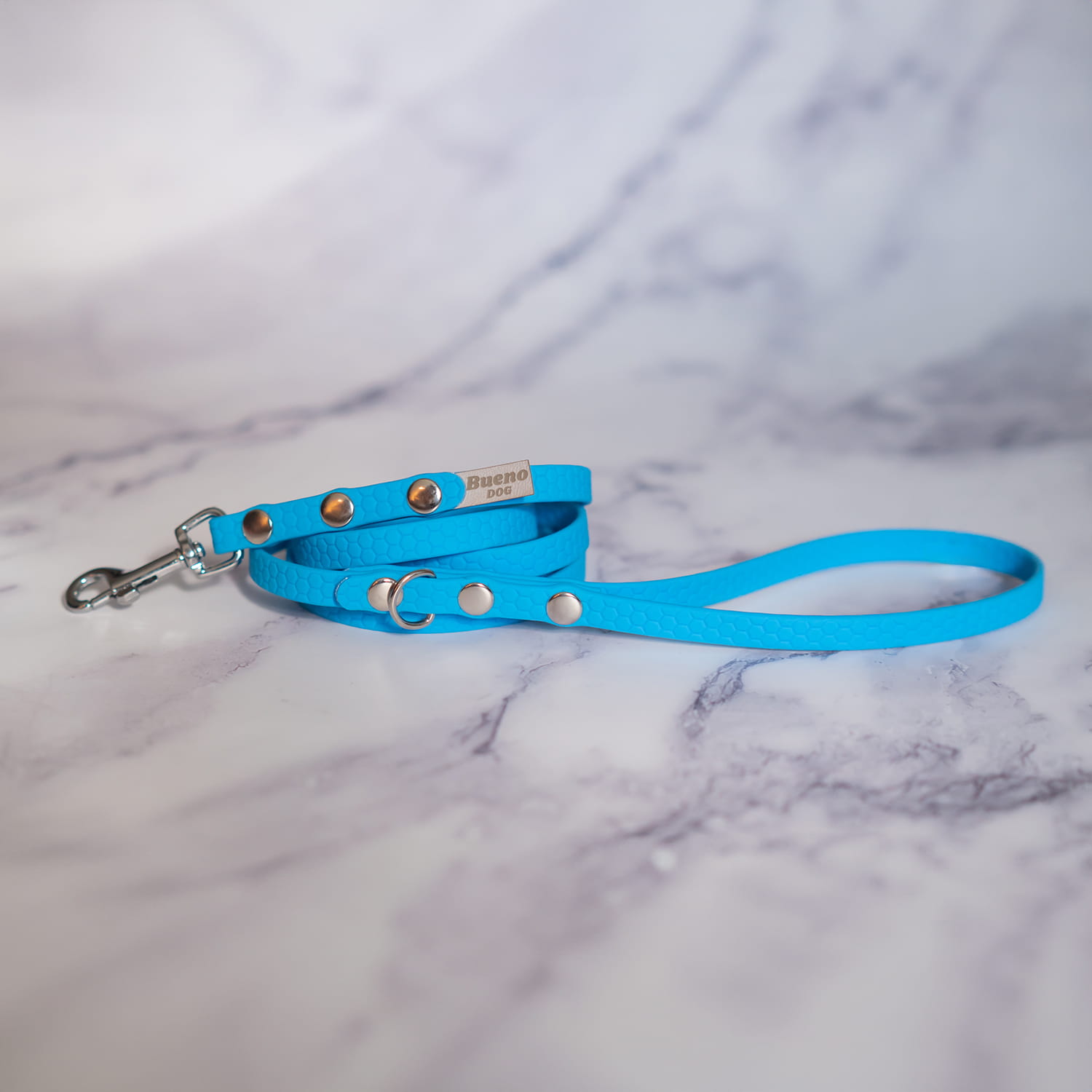 - Taśmy wodoodporne wykorzystywane w produktach marki Bueno DOG, pochodzące od Producenta Pet Hardware, zostały poddane testom wytrzymałości wykonanym w Textile Testing Institute. Wyniki testów dostępne są tutaj : https://www.pethardware.com/media/pdf/test_report_waterproof_webbing_EN.pdf