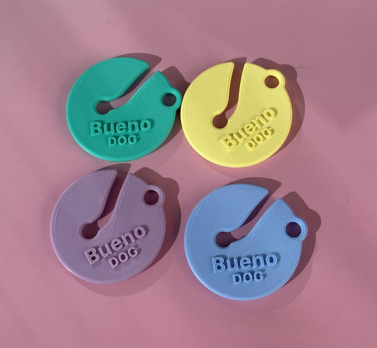 Produkt został wykonany w technologii druku 3D. W zestawie znajduje się kółko montażowe, dzięki któremu zawieszkę łatwo przypniesz do smyczy, pasa spacerowego, nerki lub innych akcesoriów spacerowych.